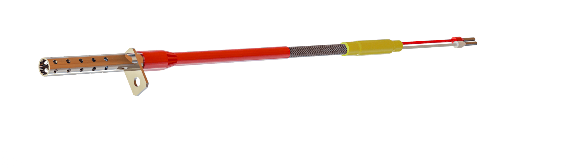 Des capteurs pour airs mesurent la température dans des médias gazeux. L’élément de mesurage se trouve sur le côté perforé du tube. La caractéristique du PWF 202 est son exécution droite avec une patte de fixation. Comme protection contre endommagement il est possible de choisir entre un ressort Ø 8 x 65 mm ou une tresse en fibre de verre spéciale de 60 mm. En standard les câbles sont en cuivre nickelé. Chaque fil a une isolation en PFA et fibre de verre sous une tresse en fibre de verre et acier inox.